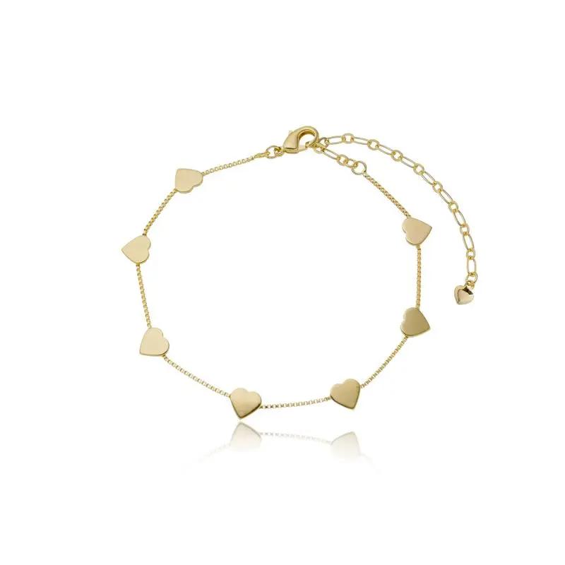 Romântica e sofisticada, essa pulseira combina a elegância da corrente veneziana com delicados corações lisos distribuídos ao longo da peça.